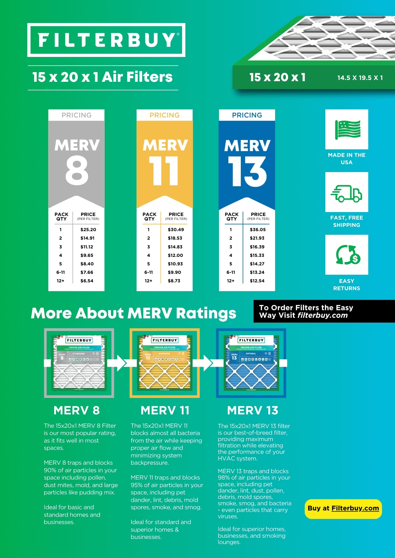 “Over the past decade, we’ve seen how something as seemingly simple as a 15x20x1 air filter can impact everything from HVAC efficiency to indoor air quality. In 2025, pricing isn’t just about dimensions—it reflects the technology behind the media, the filtration rating, and the reliability of the manufacturer. At Filterbuy, we base our pricing on real-world performance data, not marketing fluff, so our customers get filters that deliver measurable value, month after month.”